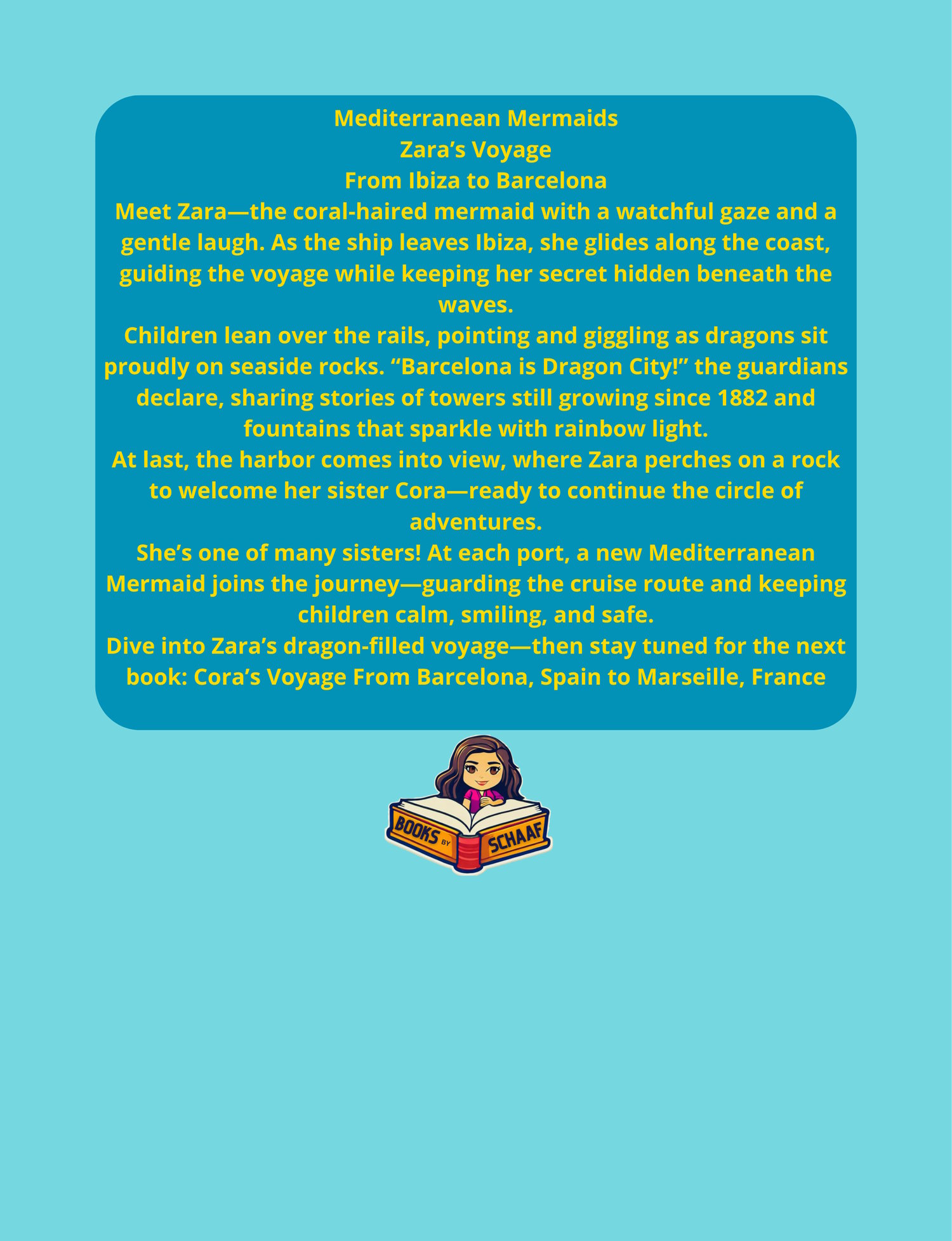 Dive into Zara's dragon-filled voyage-then stay tuned for the next book: Cora's Voyage From Barcelona, Spain to Marseille, France