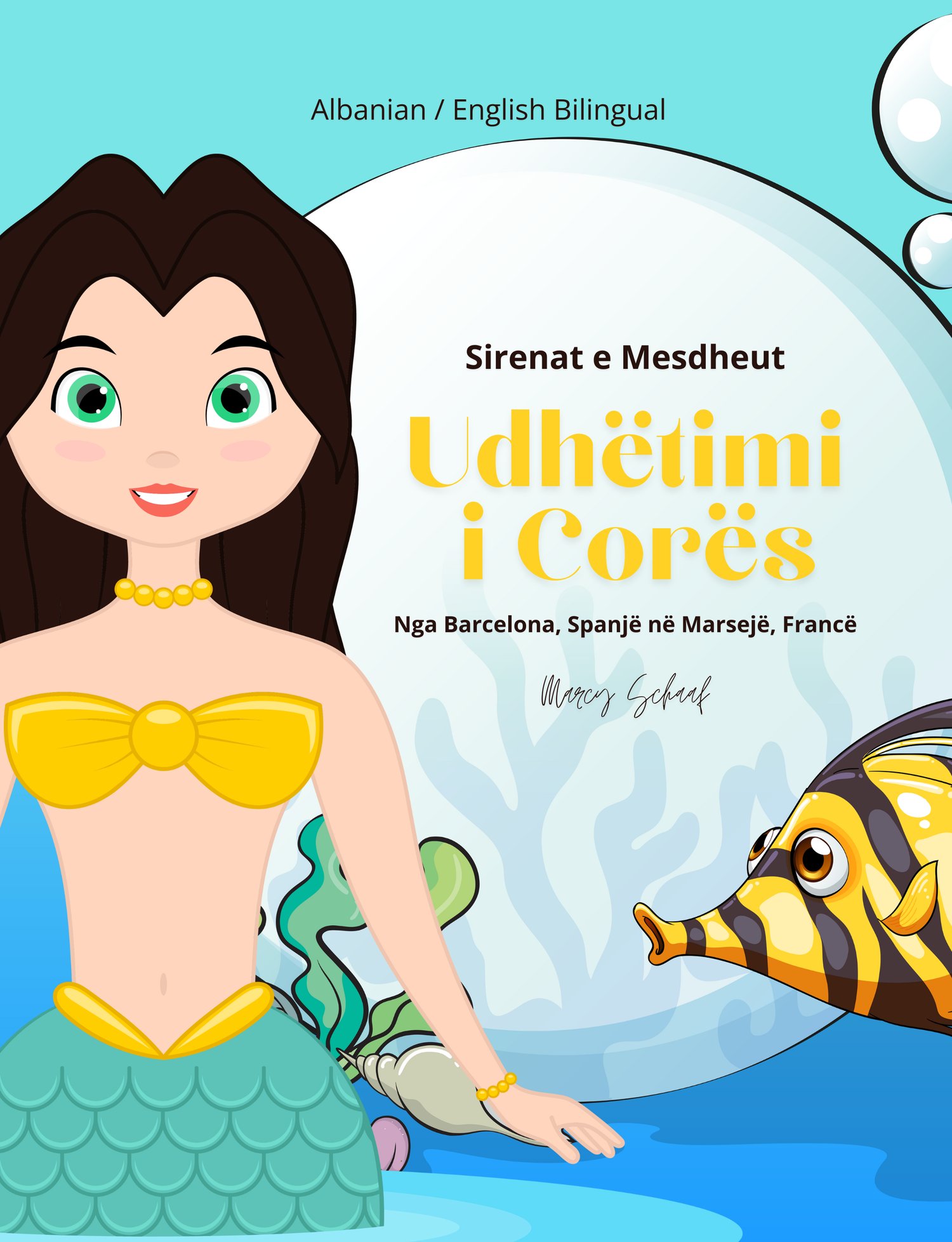 Mediterranean Mermaids Cora’s Voyage From Barcelona, Spain to Marseille, France Meet Cora — a lively, sassy Spanish mermaid with sparkling blue eyes and a love for adventure! When a cruise ship full of children sets sail from Barcelona, it’s Cora’s job to guide them safely across the sea. Along the way, she races dolphins, splashes waves into fun, and even rescues a sea turtle trapped in a net — all while keeping the children smiling from the deck above. But Cora isn’t alone! At every port, a new mermaid sister will appear to continue the journey. Together, these magical sisters protect the ship all the way across the Mediterranean. Dive into the first adventure of the Mediterranean Mermaids Series — and stay tuned for the next book, Lucia’s Voyage!