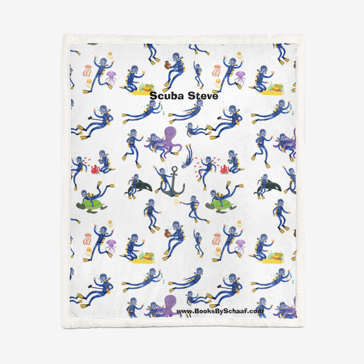 Designed with eye-catching Scuba-themed artwork, this blanket features ocean vibes, playful sea elements, and vibrant colors that make it a standout piece in any room. Inspired by the adventurous, ocean-loving spirit of Scuba Steve, it’s a great way to bring a little sea breeze into everyday comfort.